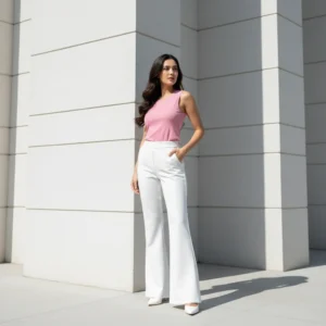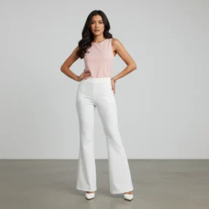 Definisikan gaya chic Anda dengan celana flare putih elegan ini! Potongan highwaist & lebar menciptakan siluet jenjang. Nyaman & serbaguna, cocok untuk tampilan kasual hingga semi-formal. Wajib punya untuk lemari Anda!