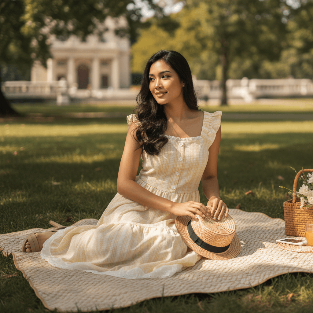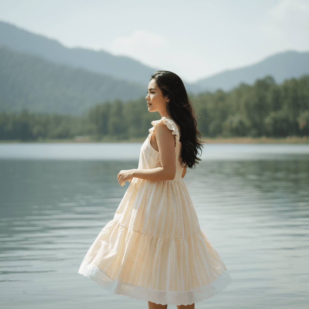 Tampil feminin & ceria dengan dress midi gingham kuning ini! Desain ruffle lengan, kancing depan, dan aksen renda bordir manis. Bahan ringan & nyaman, cocok untuk gaya casual dan liburan. Tampil stylish!