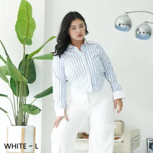Tampil chic & elegan effortless dengan Kemeja Garis Biru Putih ini! Desain klasik timeless, cocok untuk gaya kasual atau semi-formal. Bahan adem & nyaman, bikin kamu pede seharian. Pilihan tepat untuk outfit stylishmu! #KemejaGaris #AtasanWanita #FashionKasual #KemejaLenganPanjang