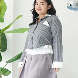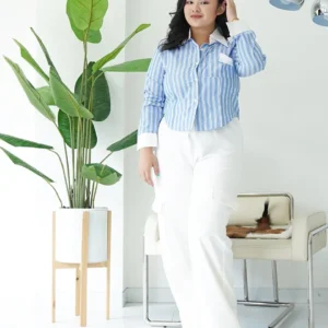 Tampil chic & elegan effortless dengan Kemeja Garis Biru Putih ini!