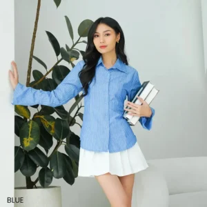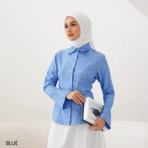 Kemeja salur wanita, desain klasik & elegan. Terbuat dari bahan nyaman, cocok untuk tampilan kasual hingga formal. Tampil stylish dan profesional setiap hari!