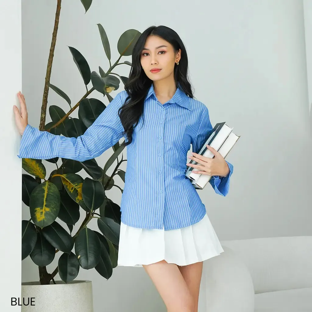 #KemejaWanita #AtasanKerja #BlouseWanita #KemejaSalur #FashionWanita